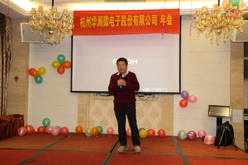 2017年1月6日晚,杭州华澜微电子股份有限公司2017年年会在萧山隆爵大酒店成功举办。到场的领导和嘉宾有华澜微电子首席科学家、著名半导体专家、国家科技进步一等奖获得者、参与研发我国第一颗晶体管的邓先灿教授,宁波赛伯乐甬科股权投资合伙企业(有限合伙)的黄昕执行总裁和银江科技集团有限公司的唐通投资总监。现场群英闪耀,热闹非凡,华澜微全体员工欢聚一堂,共同分享这个喜庆的时刻。在欢快的音乐声和主持人精彩的开场白中,华澜微2017年年会正式开始。